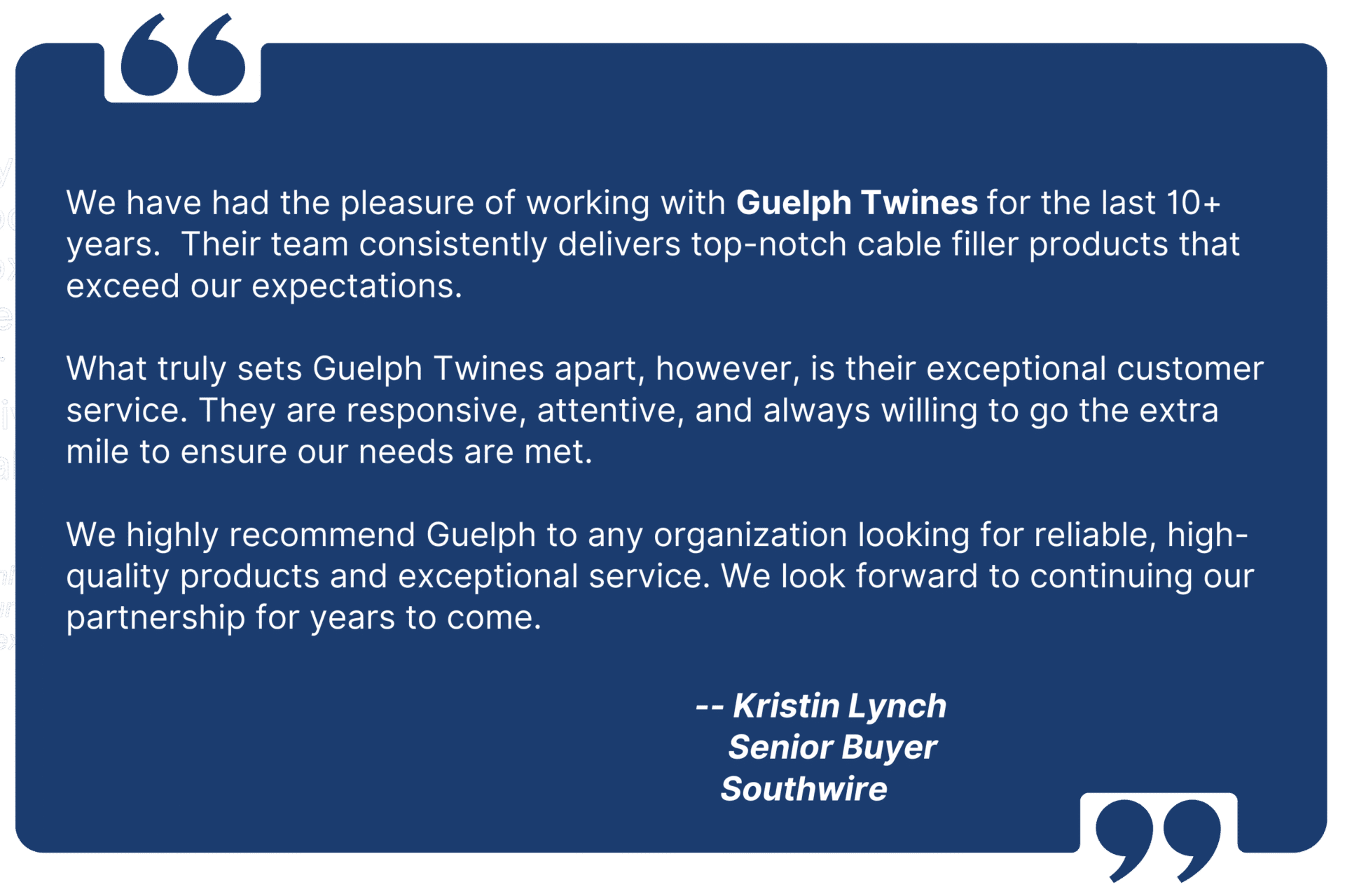 Guelph Twines Ltd. provides electrical cable industry businesses across North America with high-quality plastic (polypropylene), paper, and flame-retardant cable fillers that meet exacting industry standards.