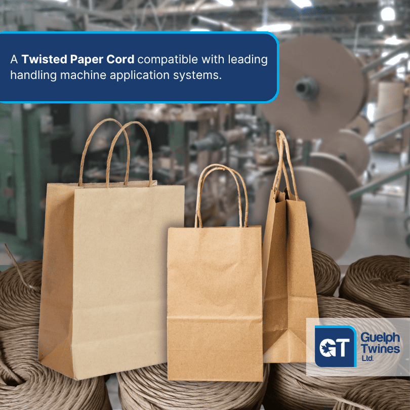 As the demand for eco-friendly packaging solutions continues to grow, Guelph Twines Ltd. is proud to introduce its newest product innovation, Twisted Paper Cord, a sustainable, machine-ready solution for retail, grocery, and e-commerce paper bag handles. Manufactured in Canada from 100% kraft paper, this new cord is designed to meet the needs of environmentally conscious brands while delivering the strength, performance, and reliability for which Guelph Twines is known.